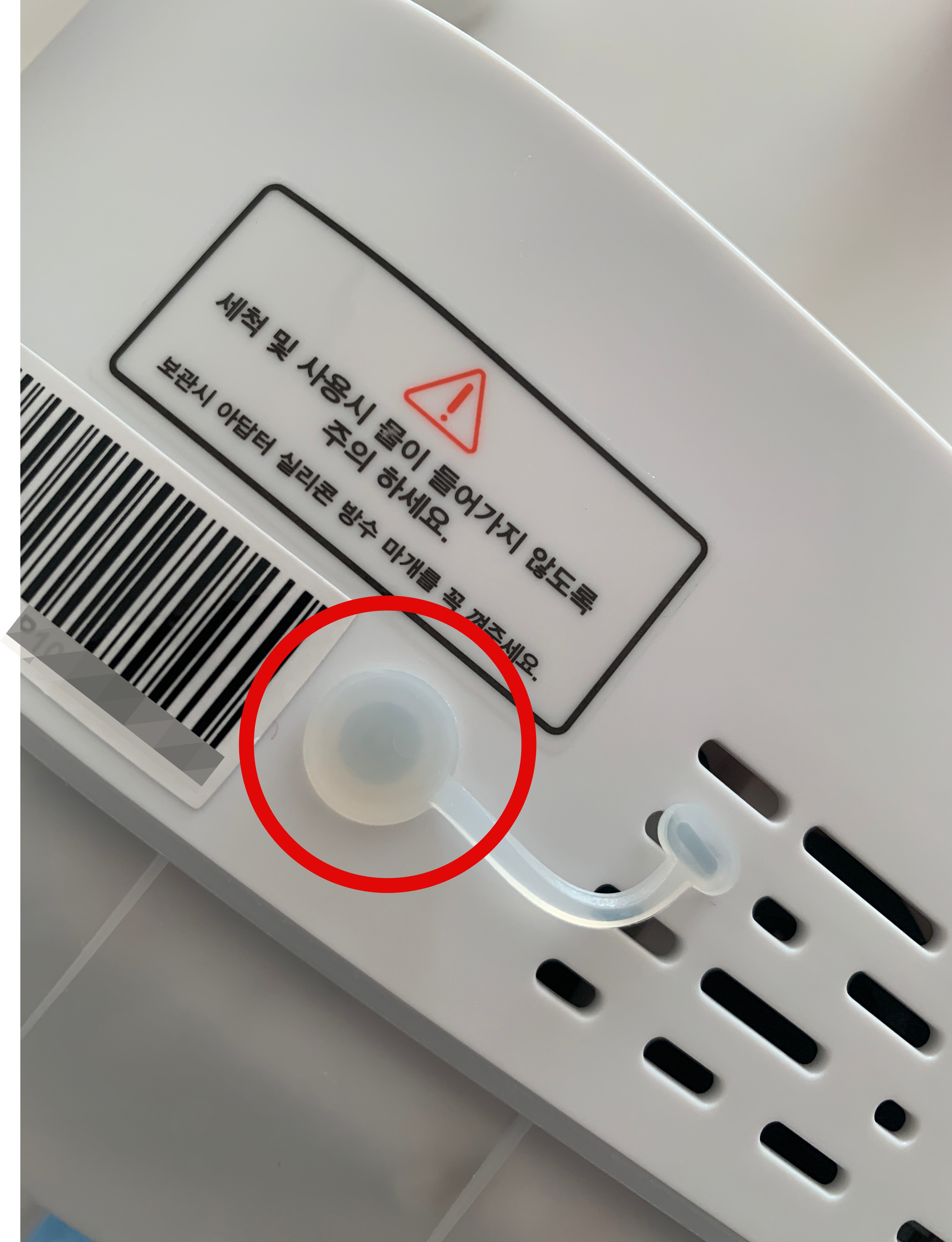 세척할 때는, 이렇게 콘선트 연결 선 안에 물이 들어가지 않도록 마개로 막아주거나 주의해서 세척해야 합니다.