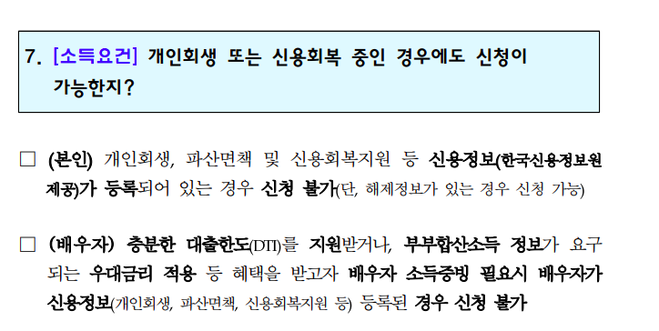 개인회생과 신용회복지원 등 신용정보가 등록되어 있는 경우에는 신청이 불가합니다.