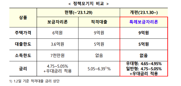 23년 1월 30일부터 주택가격 9억 원 이하면 소득 수준과 무관하게 최대 5억원까지