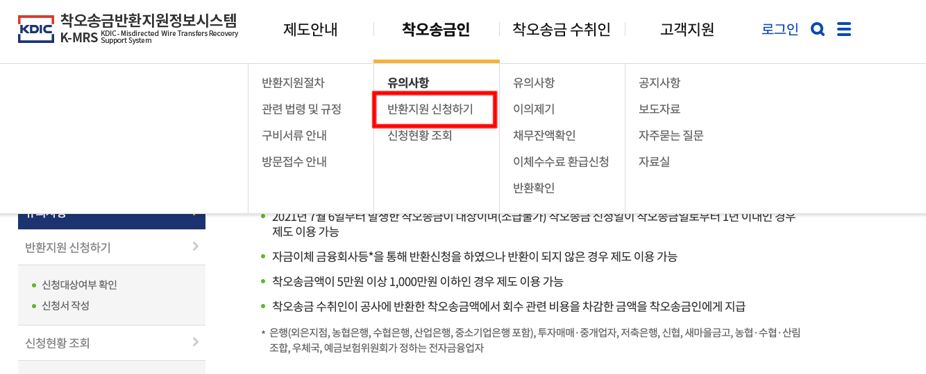 착오송금 반환 신청하는 방법