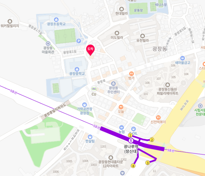 광장중학교 근처라고 생각하시면 됩니다.