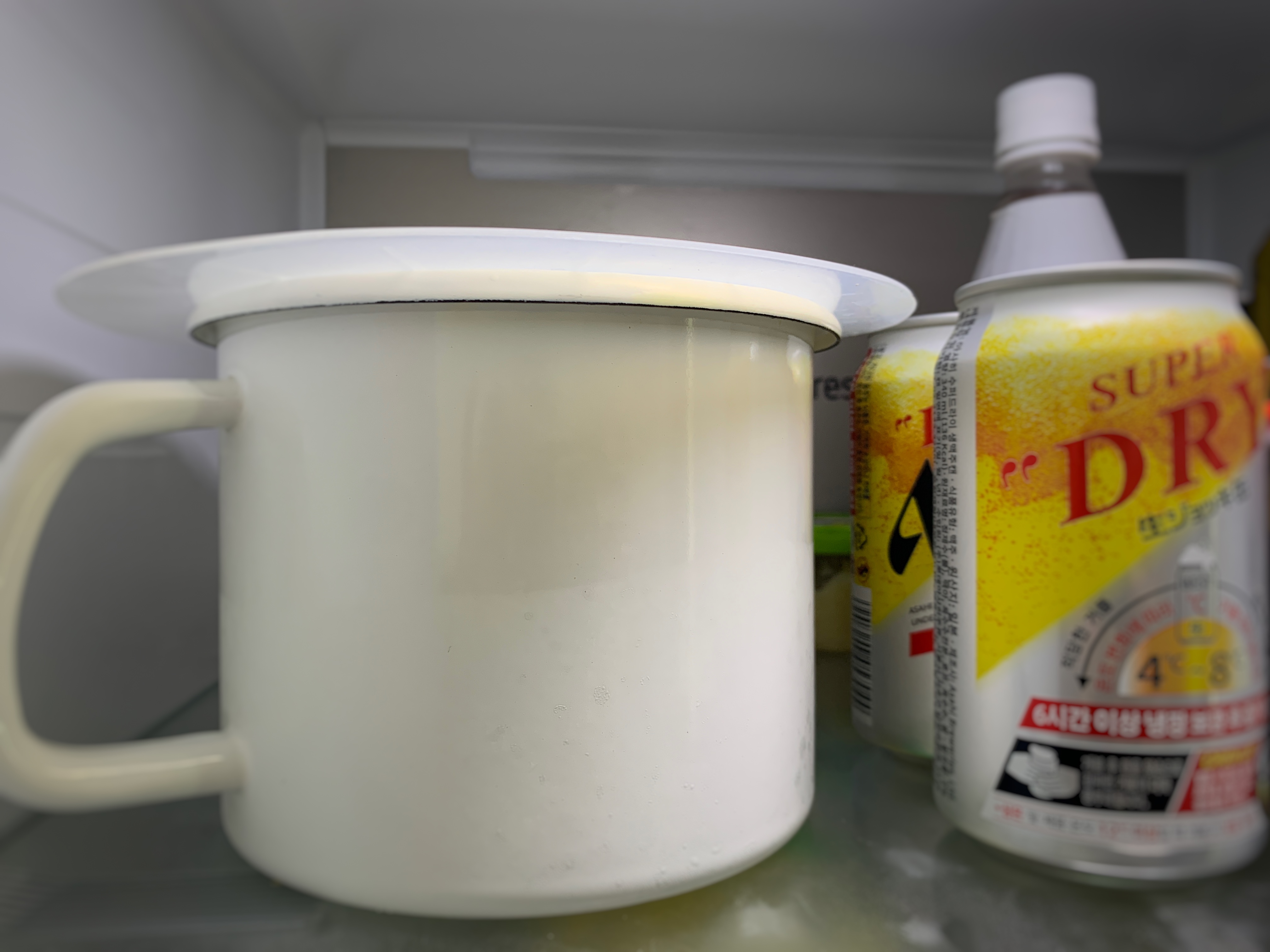 반나절 이후 전분이 가라앉으면 전분은 제외하고 맑은 물을 사용해 청을 만듭니다.