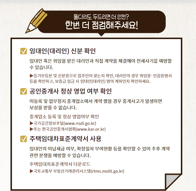위에 있는 체크리스트만 잘 살펴봐도 전세사기는 예방할 수 있습니다.