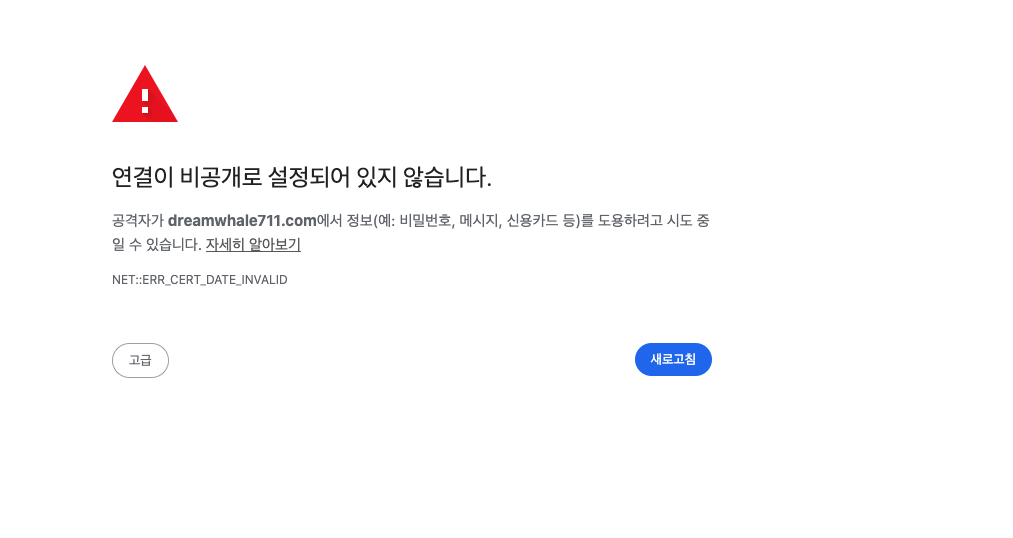 구글 검색으로 왜 이런일이 생기는지 알아보니 '보안인증서 만료'에 따른 오류 메시지 때문이라는군요.