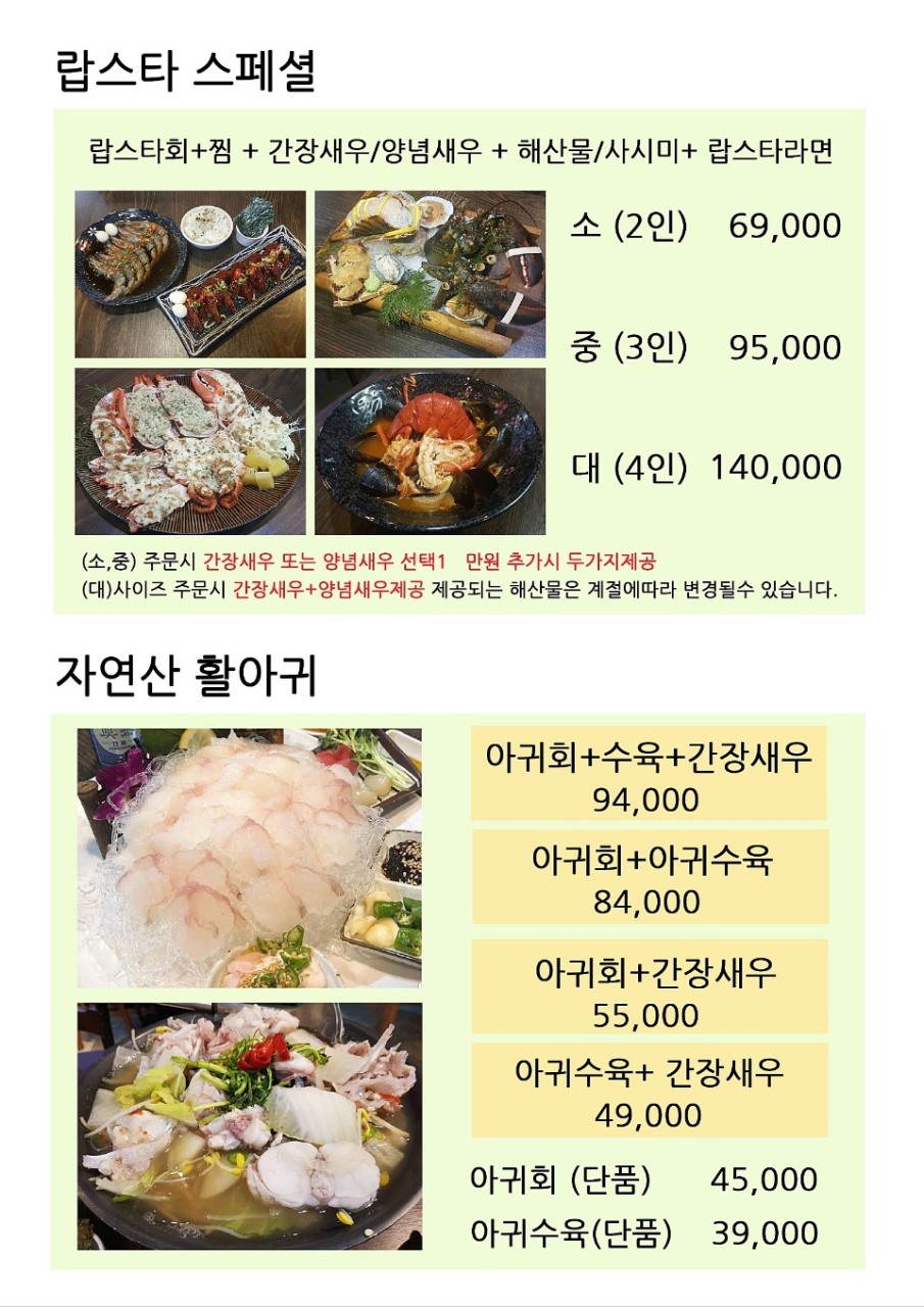 위 메뉴판 외에 제철회+자연산회도 있으니 참조해 주세요.