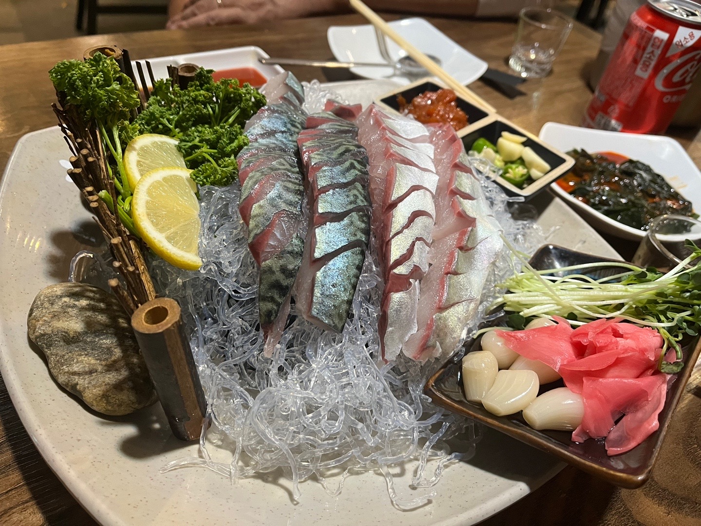 오늘의 메뉴로 추천받아먹었던 <고등어회>입니다.