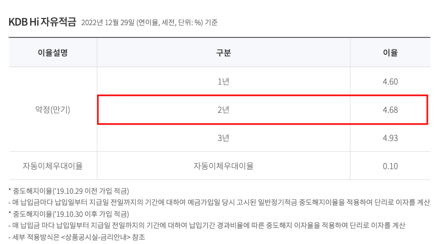 | 한국산업은행 | KDI Hi 자유적금 | 자유적립 | 4.68% | 3.96% | 4.78% |