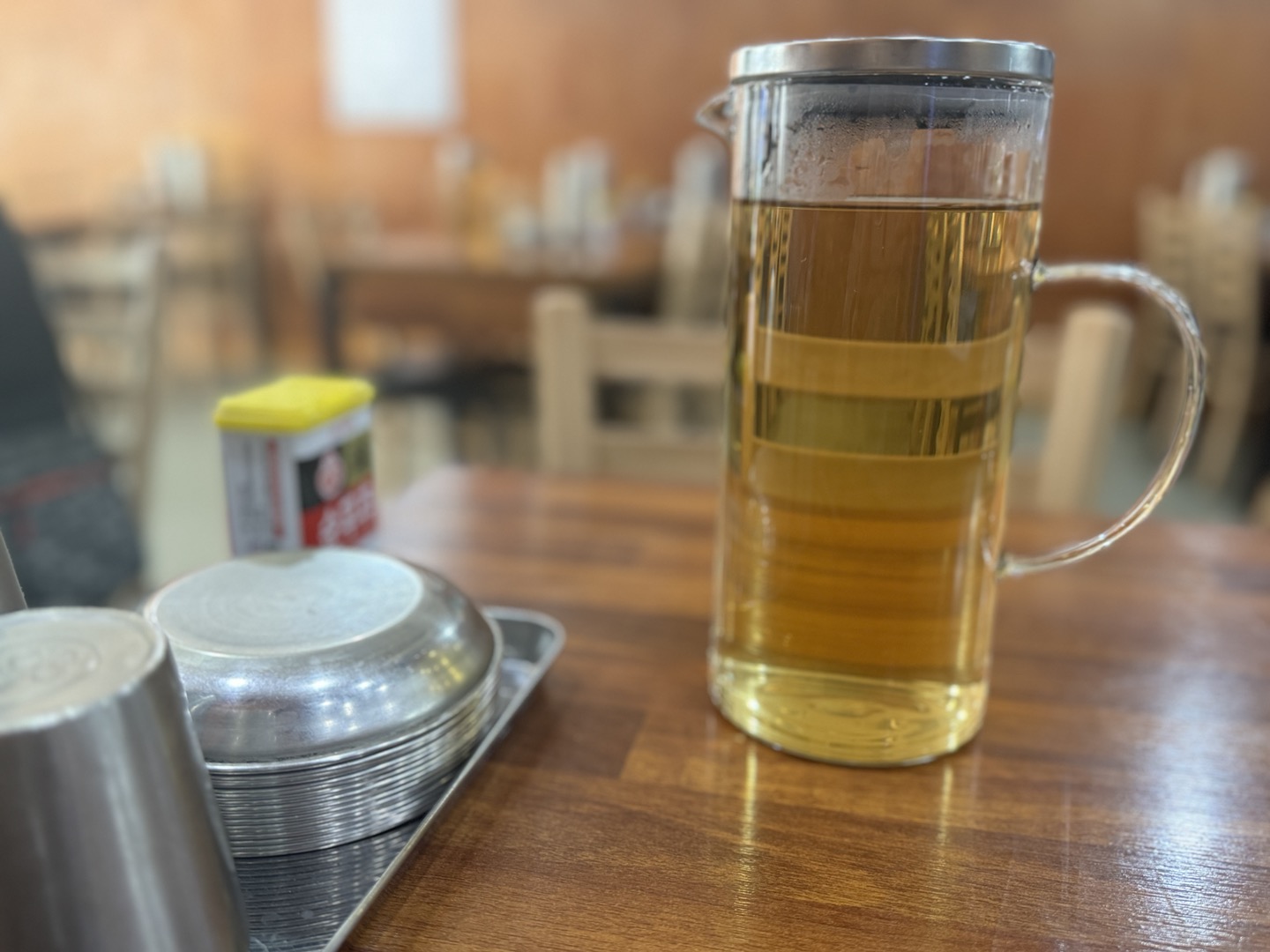 기본 찬은 노란 단무지와 김치뿐이에요.