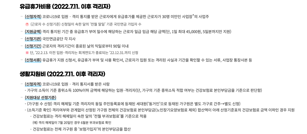 신청조건:코로나19 감염으로 입원격리 및 격리 통지서를 받은 사람