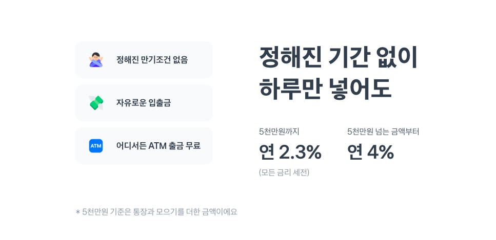 저희는 갑자기 쓸 일이 있을지도 몰라, 돈을 묶어두지 않고, 출금이 자유로워야 하는 파킹통장을 여전히 선호하고 있습니다.