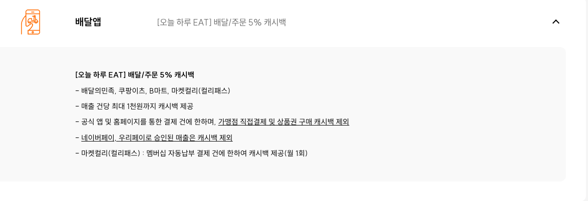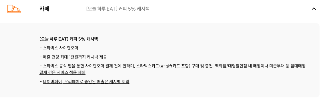 쿠팡:일반결제 미 쿠페이 결제 시 캐시백 제공(쿠팡로켓와우 및 기타 간편 결제 건 캐시백 제외)