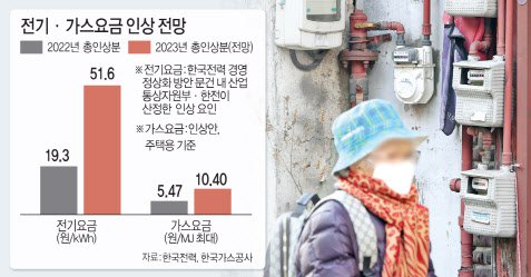 전기요금과 가스요금은 2022년 이미 16% 정도를 인상했는데, 내년(2023년) 4월쯤 20% 추가 인상을 예고하고 있습니다.