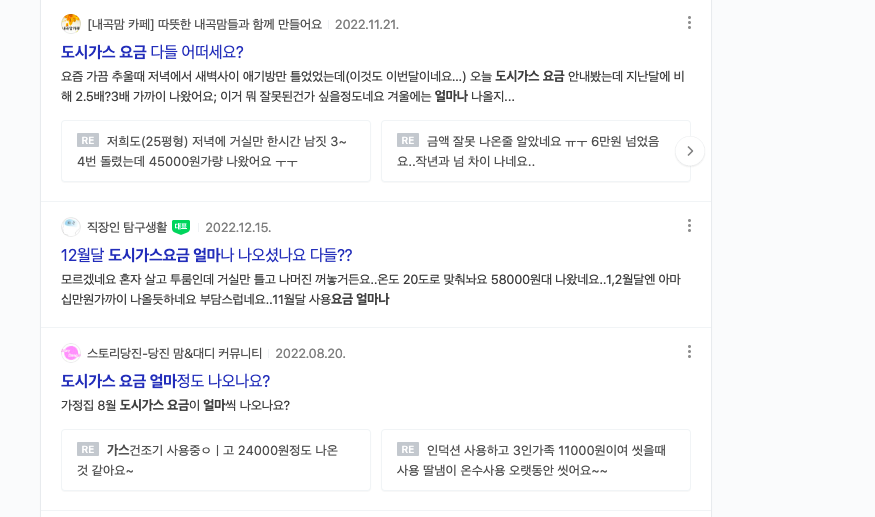 다음과 네이버 커뮤니티에서도 도시가스요금 인상 소식이 연일 화제가 되기도 했습니다.